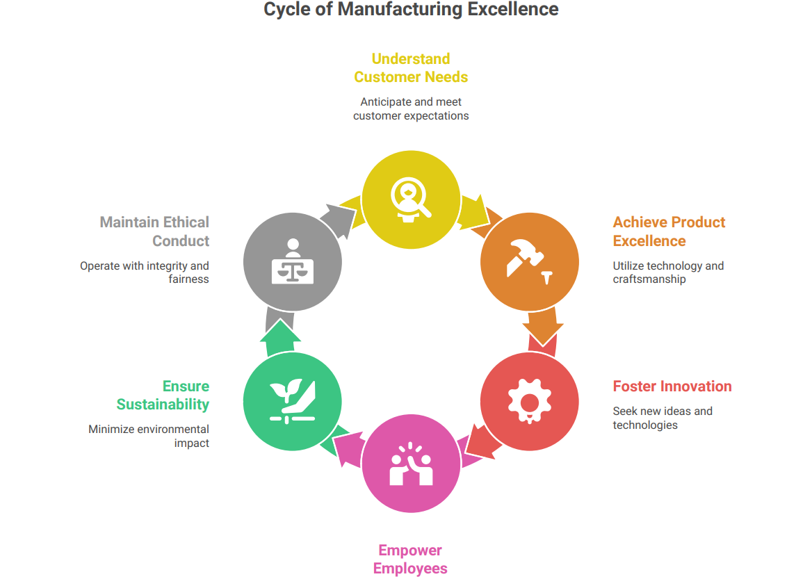 • Product Excellence: Utilizing advanced technology, rigorous quality control processes, and skilled craftsmanship to produce superior products.