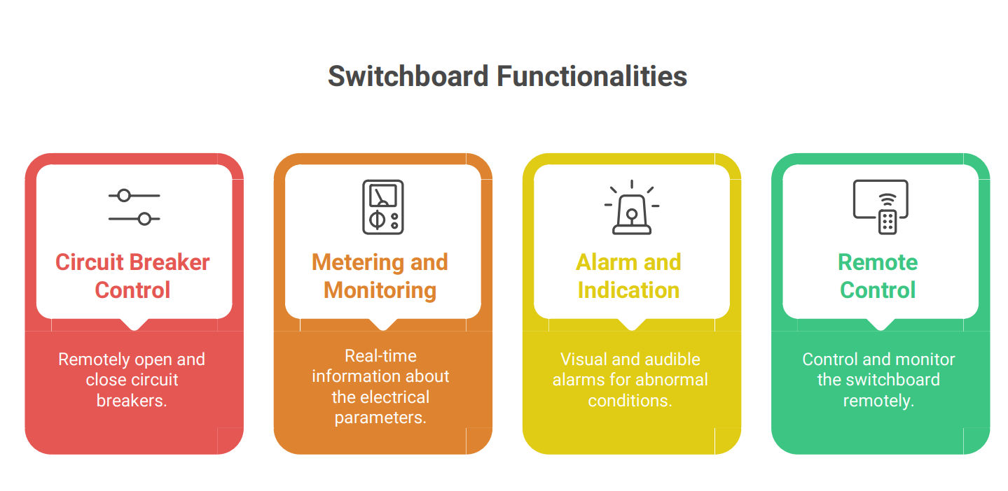 • Remote Control and Monitoring: Allows operators to control and monitor the switchboard from a remote location