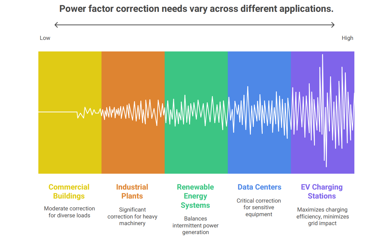 • Electric Vehicle Charging Stations: To improve the power factor of EV charging stations.