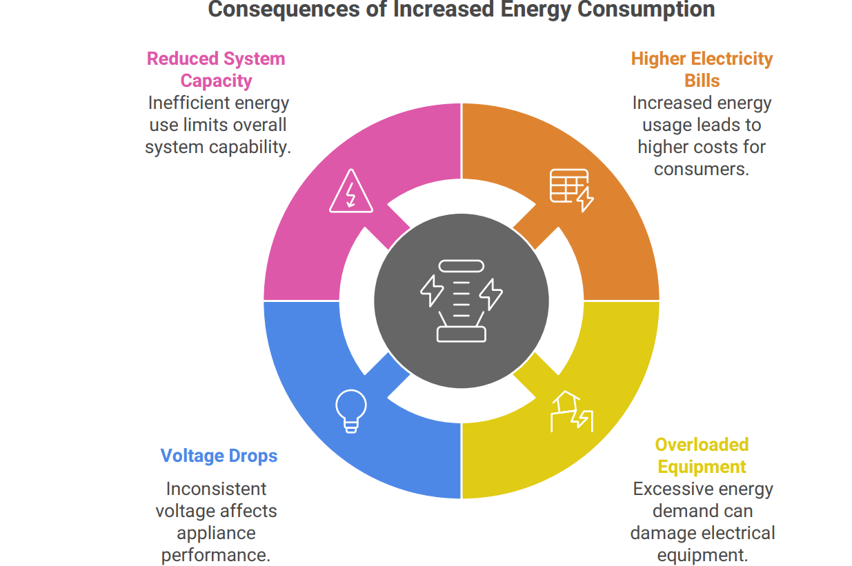 Power factor (PF) is the ratio of real power (kW) to apparent power (kVA) in an electrical circuit. A low power factor indicates that the electrical system is inefficiently utilizing the supplied power. This inefficiency leads to several problems, including: