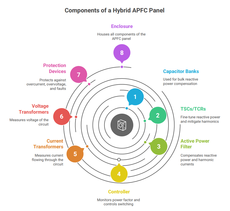 Hybrid APFC systems combine capacitor banks with other reactive power compensation techniques, such as: