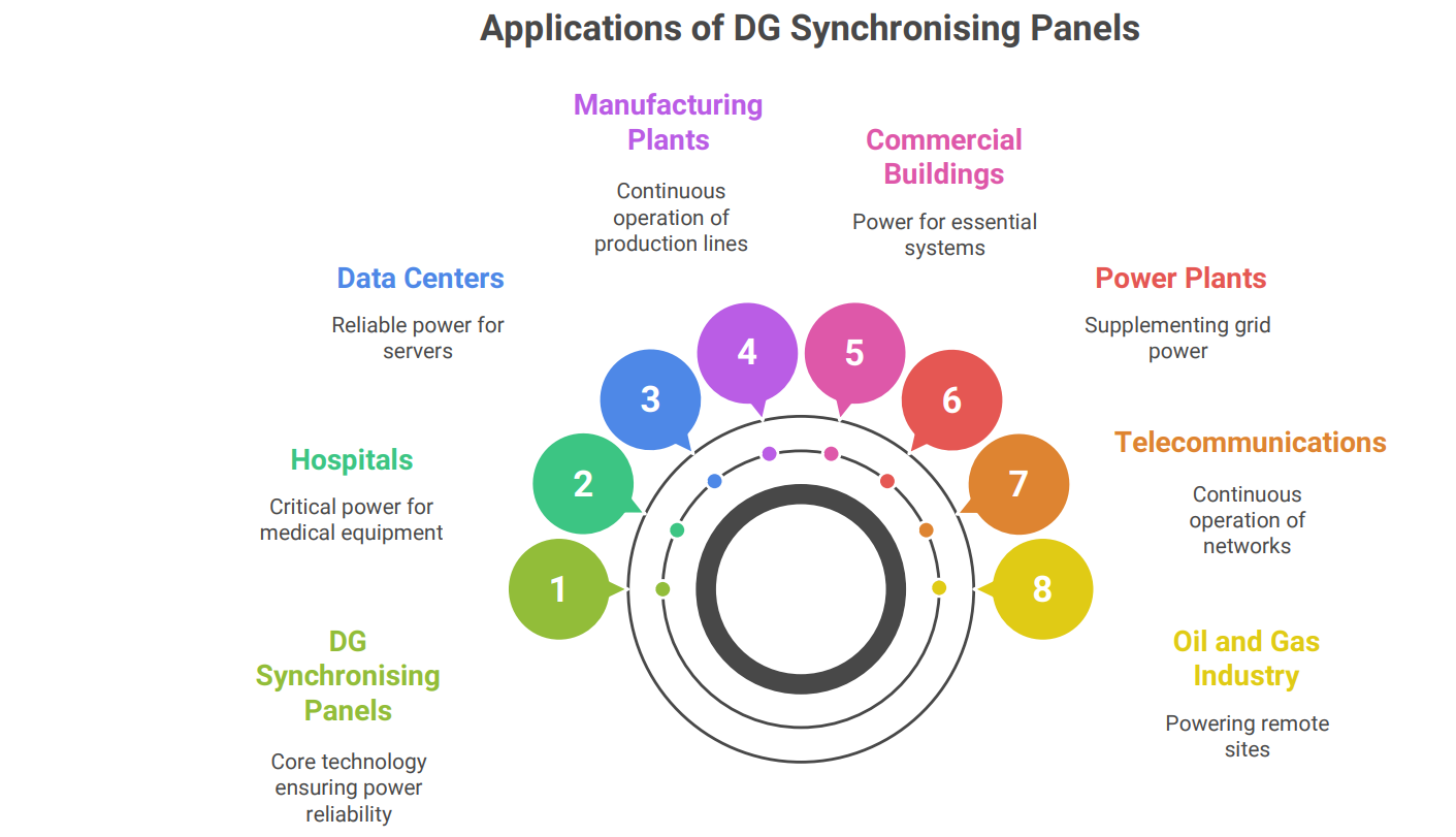 DG synchronizing panels are used in a wide range of applications, including: