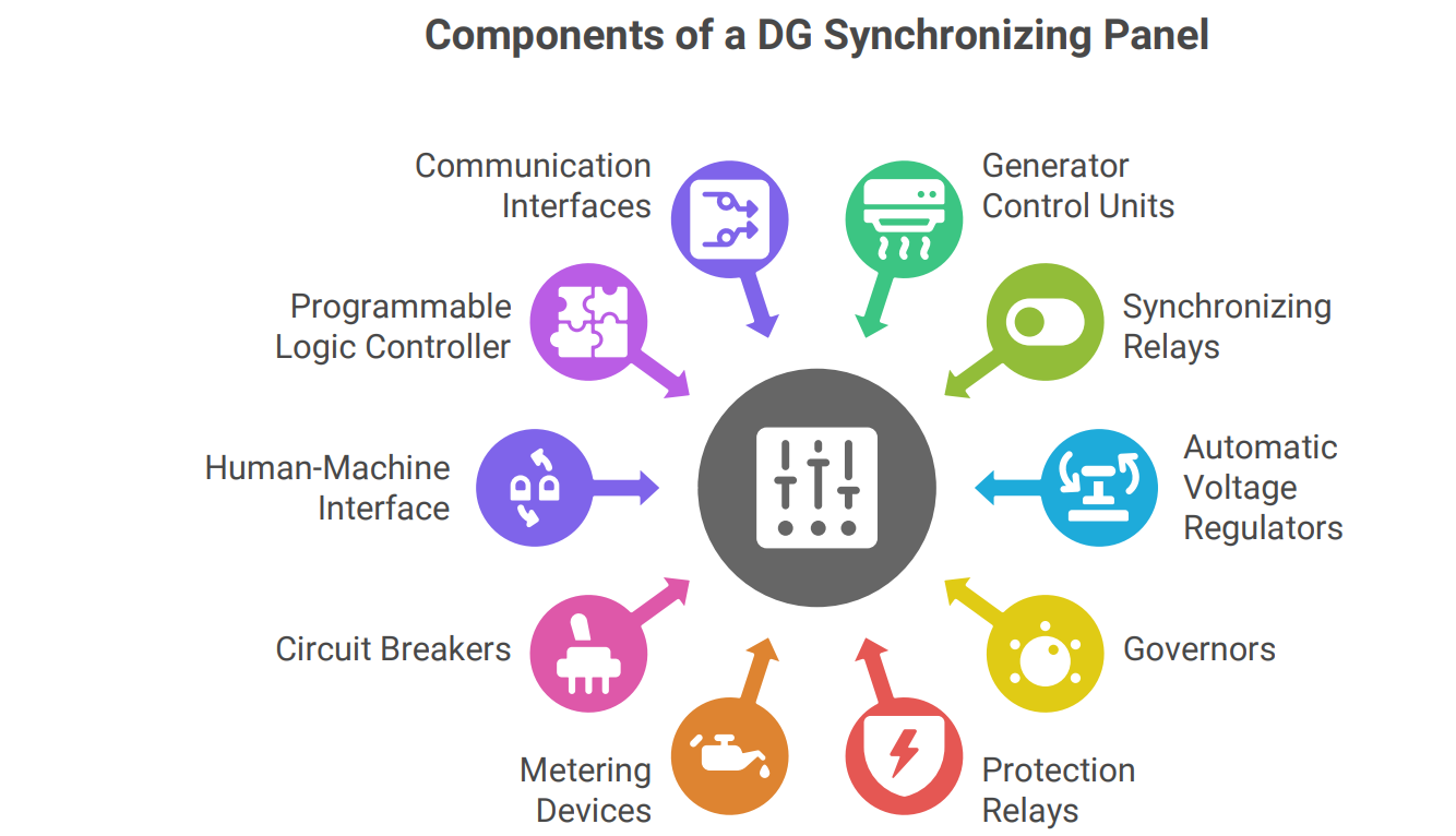 A typical DG synchronizing panel consists of the following key components: