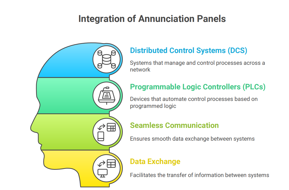 Annunciation panels are often integrated with other control systems, such as distributed control systems (DCS) or programmable logic controllers (PLCs). This integration allows for seamless communication and data exchange between the annunciation panel and the control system.